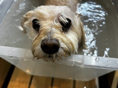 オゾン浴は後ろ足からゆっくり浸かります🍀