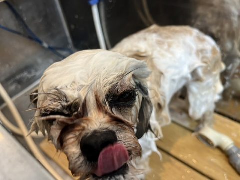 二人はシャンプーコースなのでお髭を切ったら一足先におしまいだよ!
