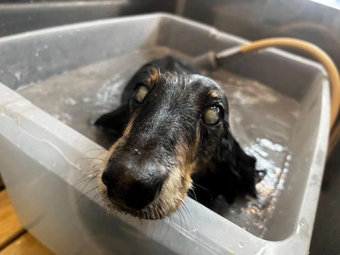 お散歩の汚れも落ちてお水が濁ってきたね🫡