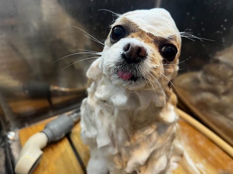 全身モコモコ泡でシャンプーをして気持ちよかったね🌷
