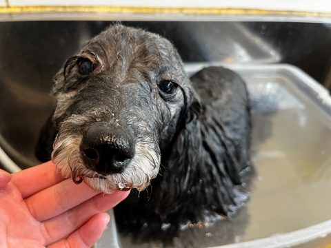 今日も休みながらシャンプーコースを最後まで頑張ってくれたラッキーくん🐶
