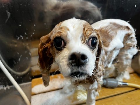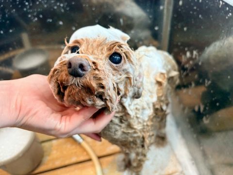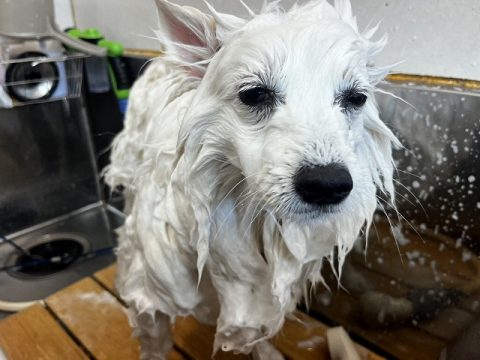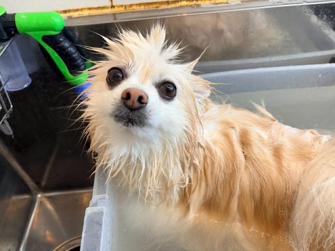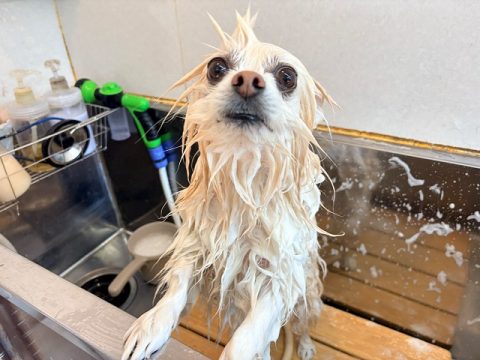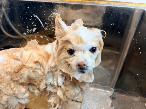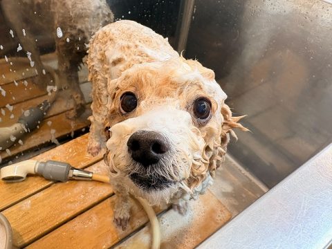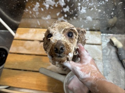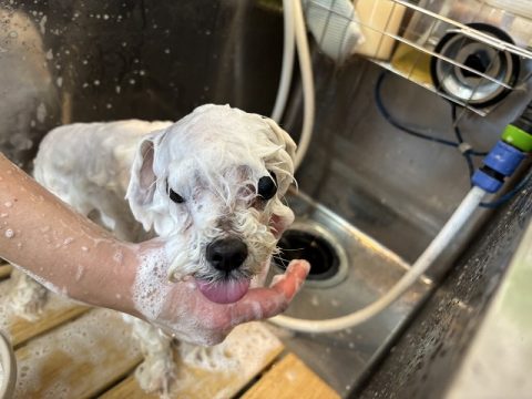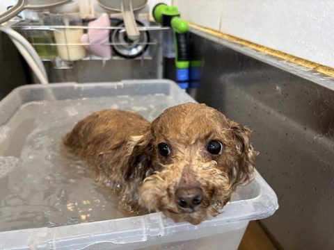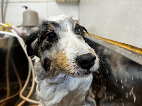 帰る前にシャンプーをしてお散歩でついた汚れを綺麗に落としてから帰ろうね🏠