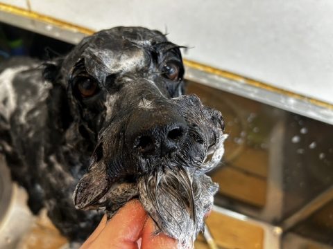 ふさふさのおひげも丁寧にシャンプーしてお揃いの香りになりました🌺