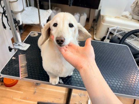飼い主さんを一緒にお見送りできたらお手入れ始めるよ!
