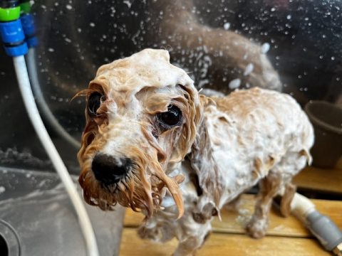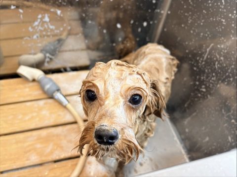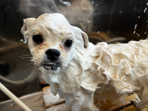 シャンプーも足先からお顔まで隅々まで洗っていくよ🧼