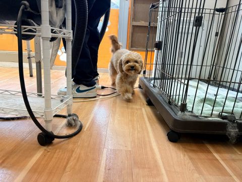 一緒に飼い主さんのお見送りができたらお手入れを始めていこうね!