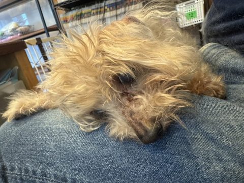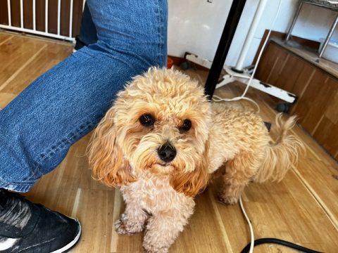 スタッフの足元で順番待ちをしているニコちゃん🍀