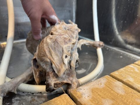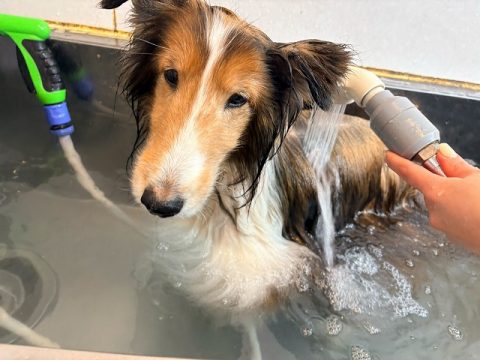 後ろ足から入って支えてもらいながら背中からもオゾンをかけ流していこうね🚿