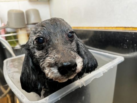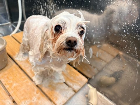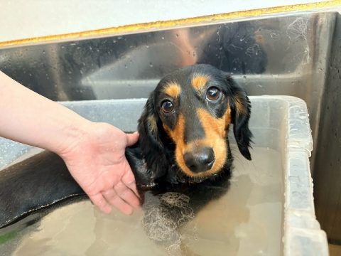お友達ともあいさつをしてお尻をくっつけてのんびりしたらシャンプーを始めていこうね🔔