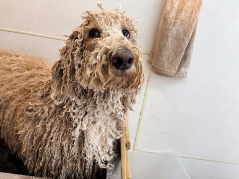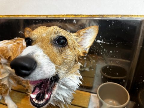 もこもこ泡のシャンプーで洗われて気持ちよかったね。