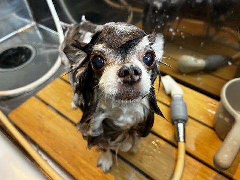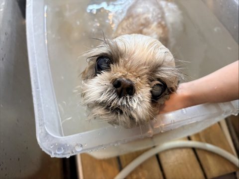 お顔のシャンプーもへっちゃらなノアちゃん♪