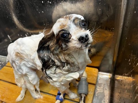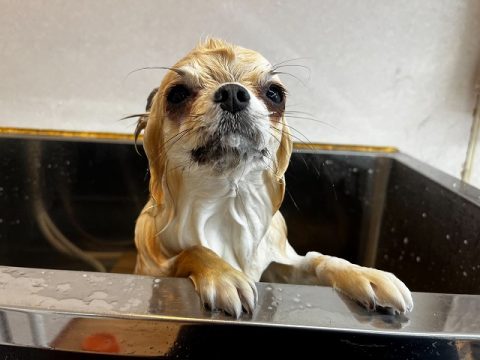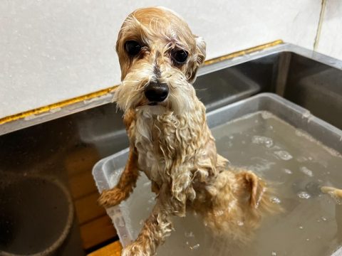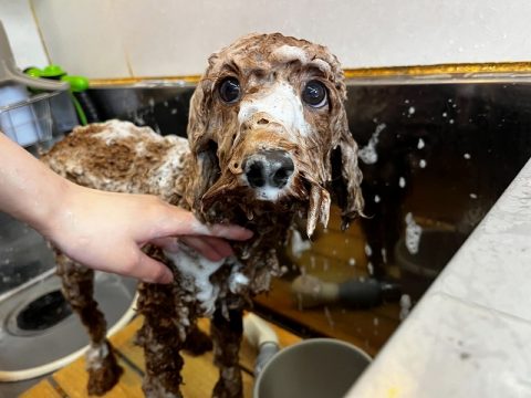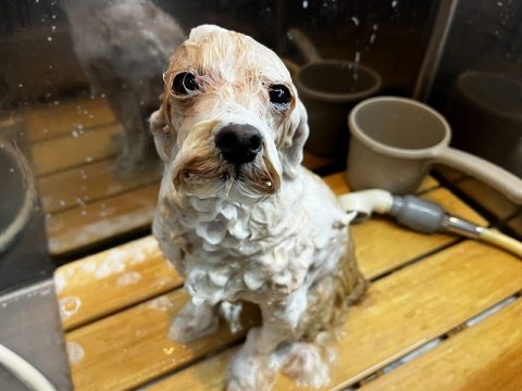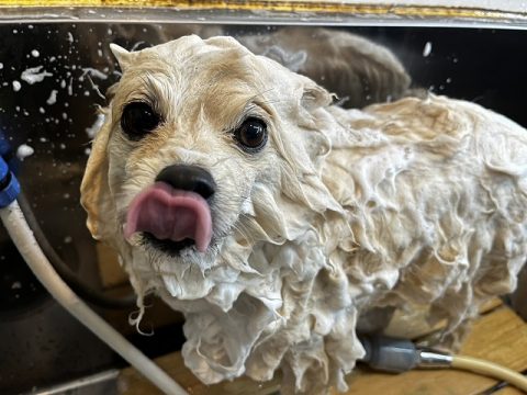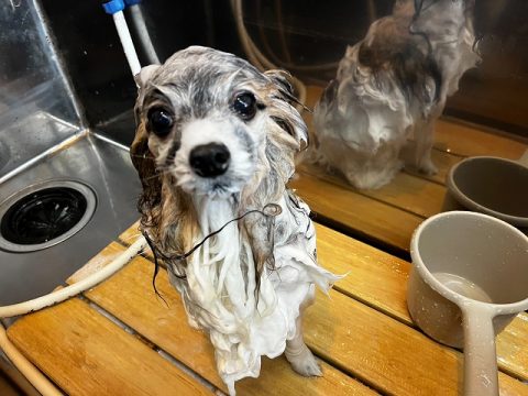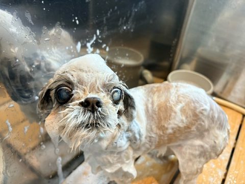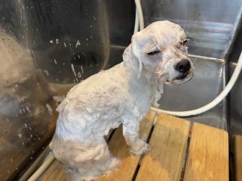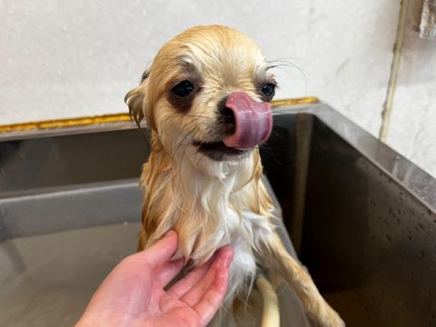 朝のお散歩も済ませたら帰る前にシャンプーをします✨