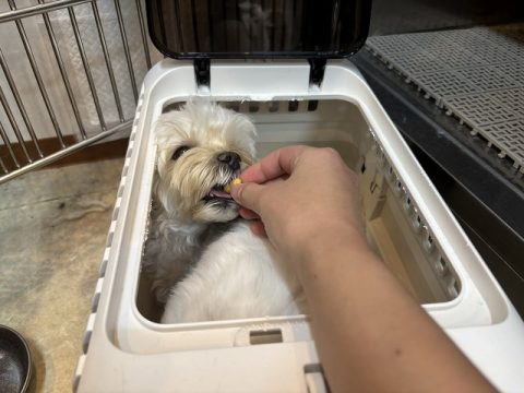 オゾン浴ではいつも顎を乗せて気持ちよさそうです😚
