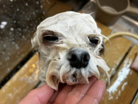 真っ白ヘアーになるようにシャンプーで全身の汚れを丁寧に落としていきます(●´ω`●)
