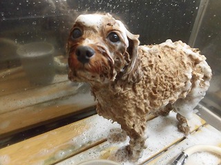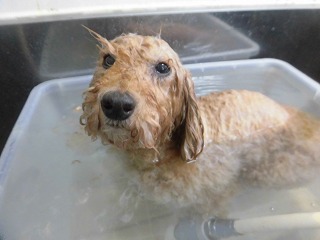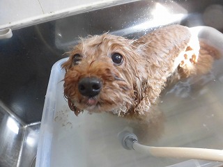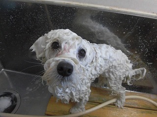 シャンプー中もずっとにこにこ笑っています(^_-)-☆