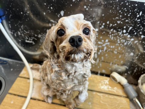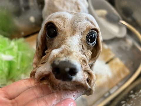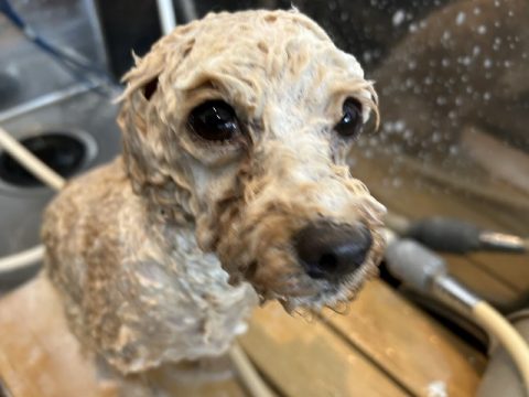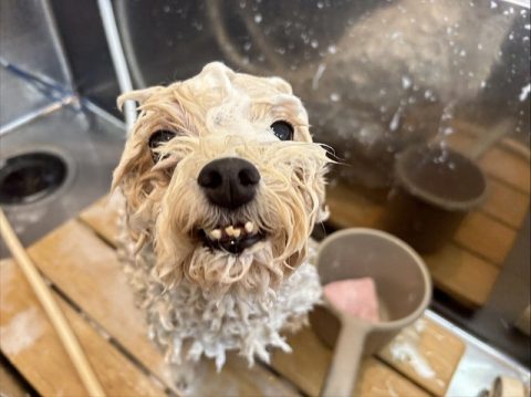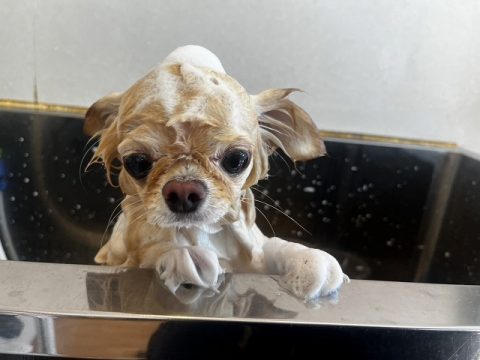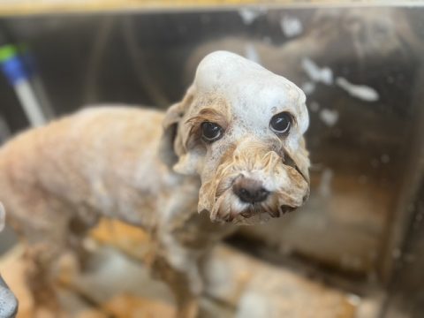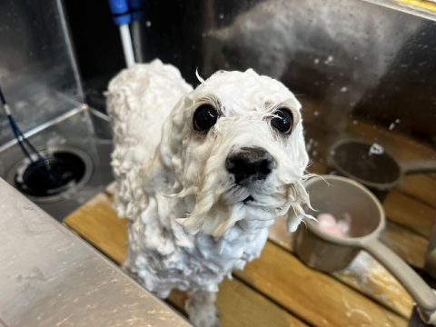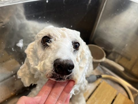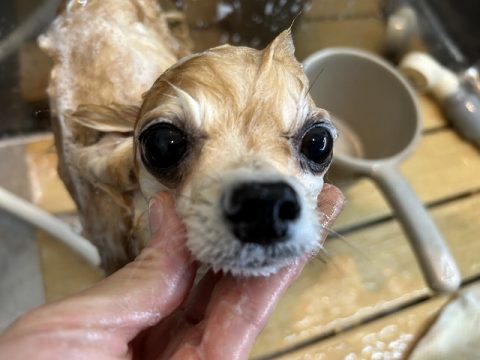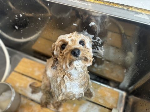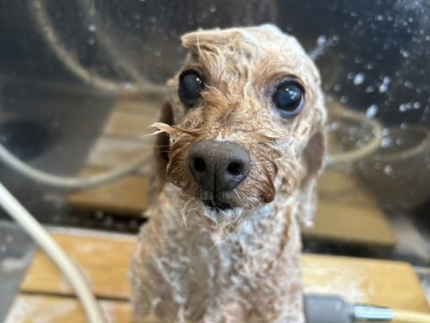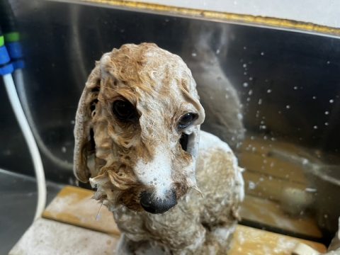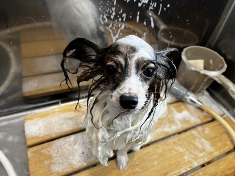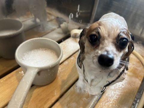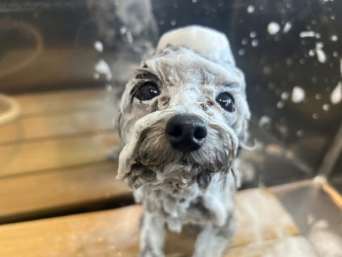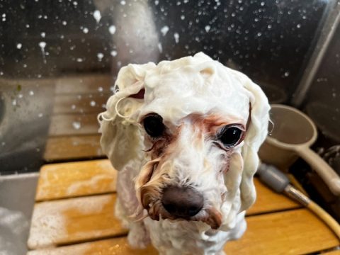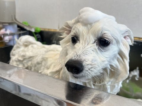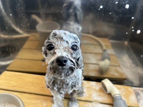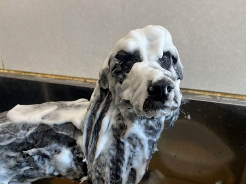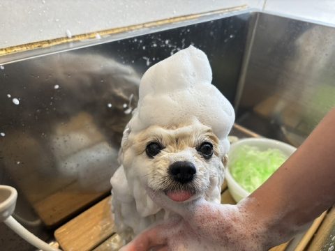もこもこ泡のシャンプーで洗われて気持ちよかったね。