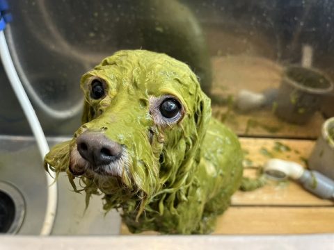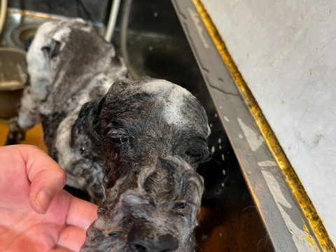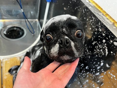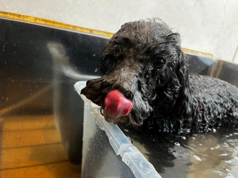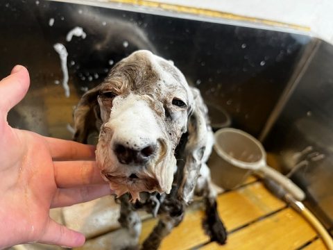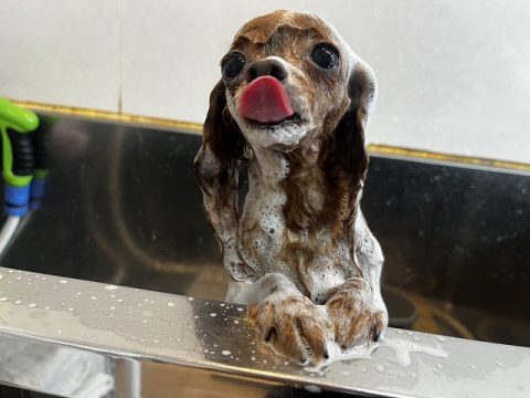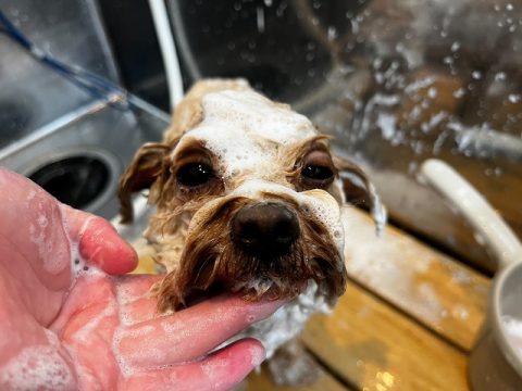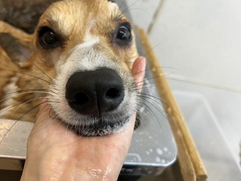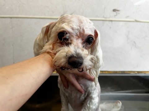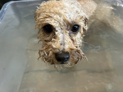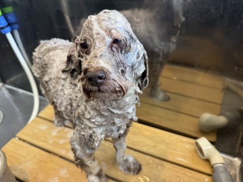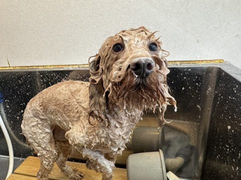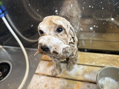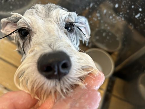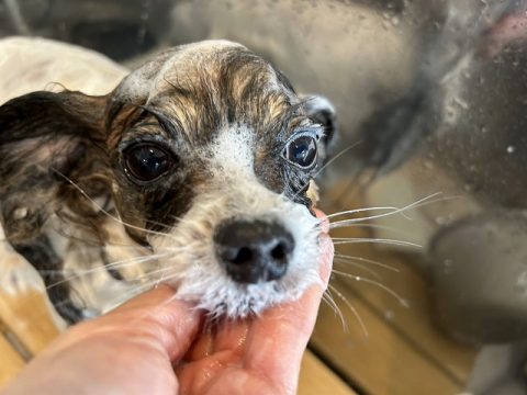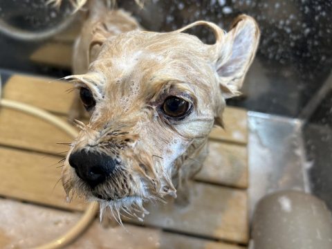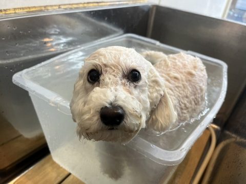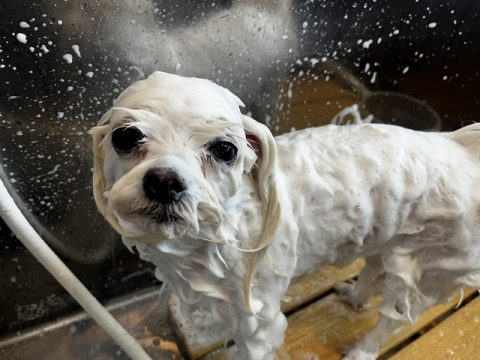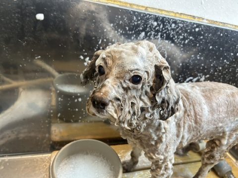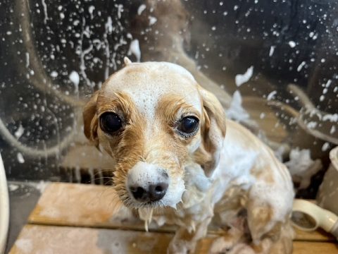 もこもこ泡のシャンプーで洗われて気持ちよかったね。