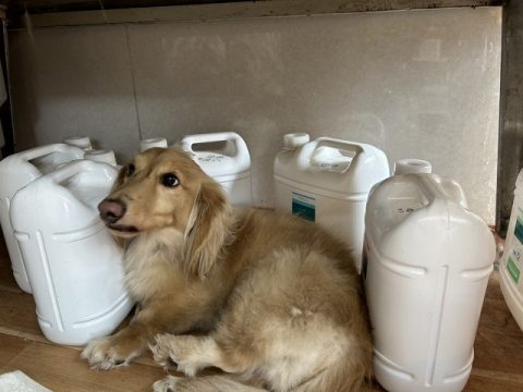 まずはオゾン浴をしてお散歩汚れを浮かそうね(*^_^*)