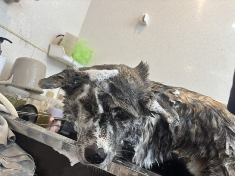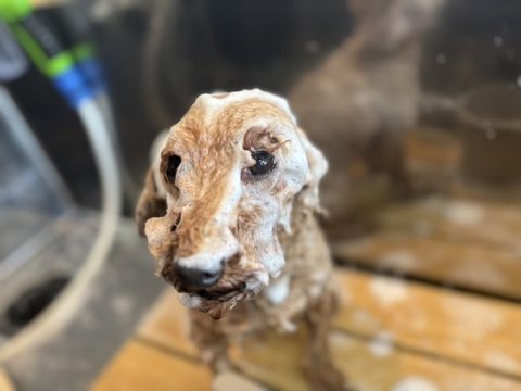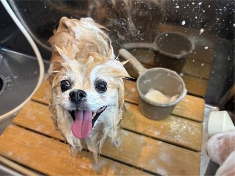 たっぷり泡立ててシャンプーをして気持ちよさそうです(*^^*)