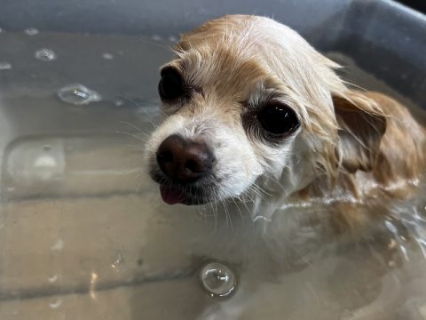 今日も肩までオゾンに浸かって気持ちよさそうなノアくん🛁
