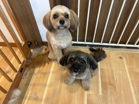 シャンプー後は、ふわふわになった小夏ちゃんと柑太くん(*^▽^*)