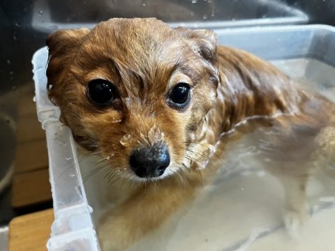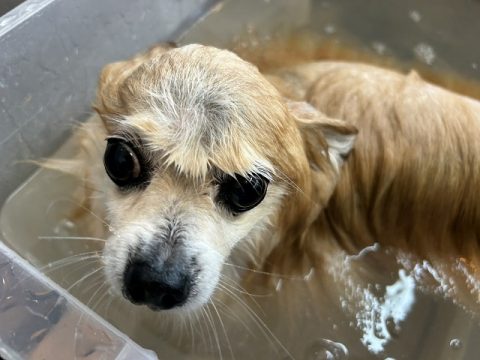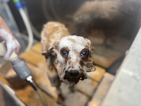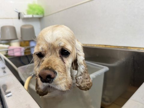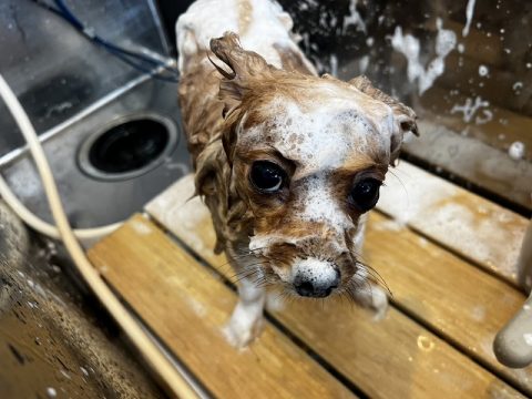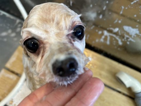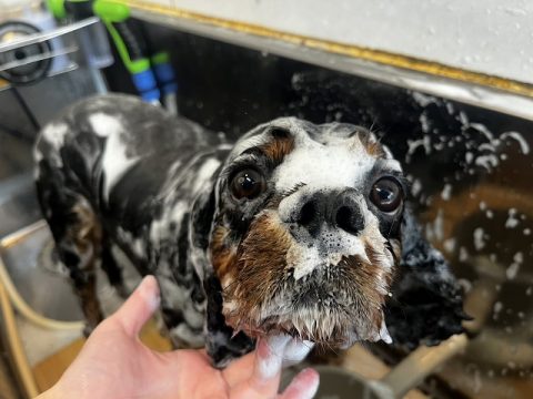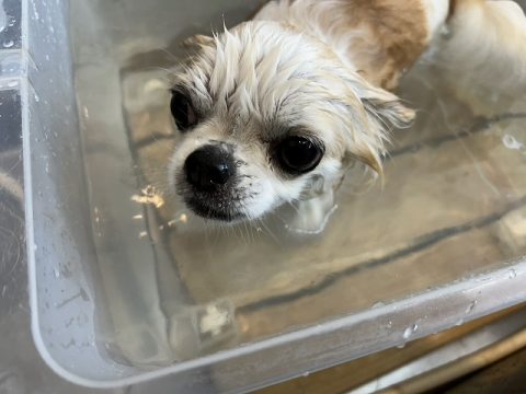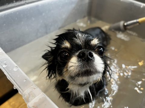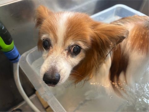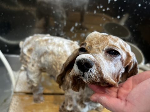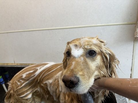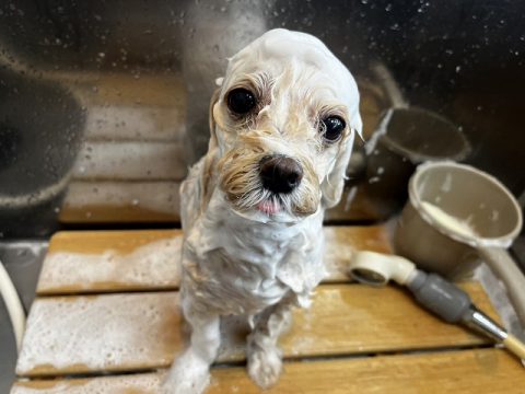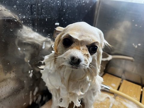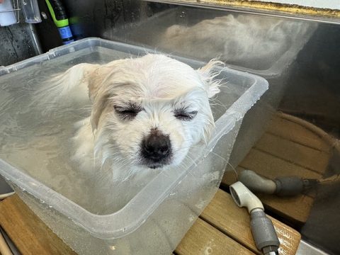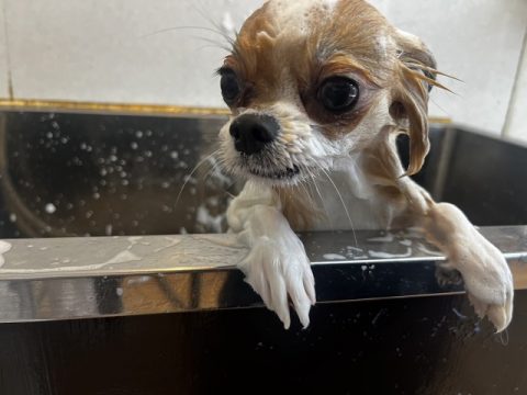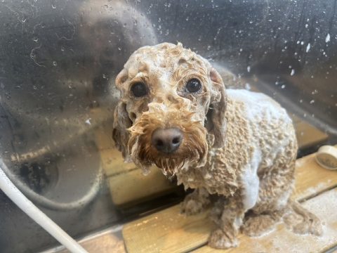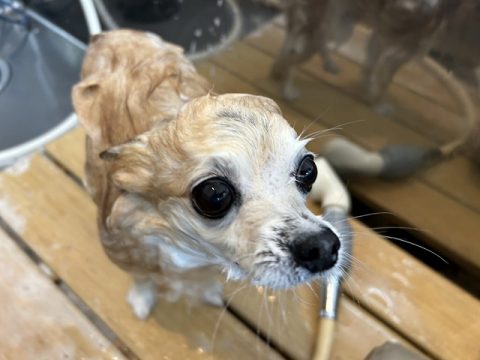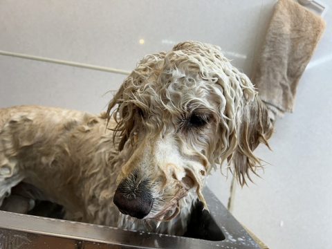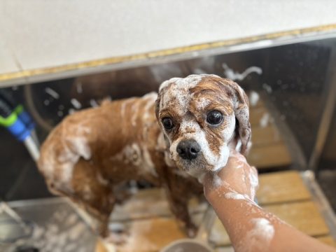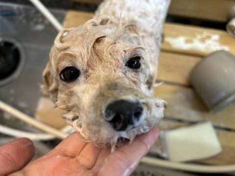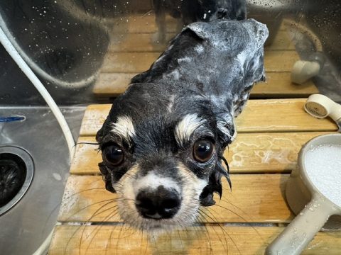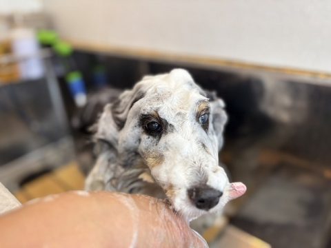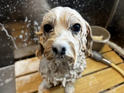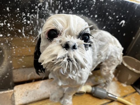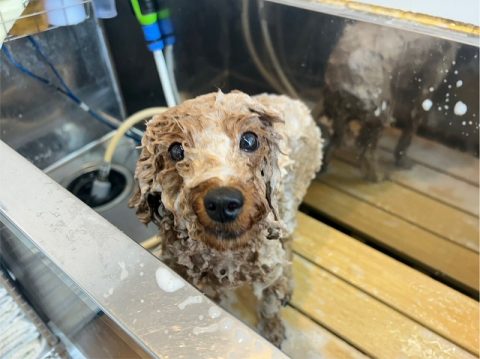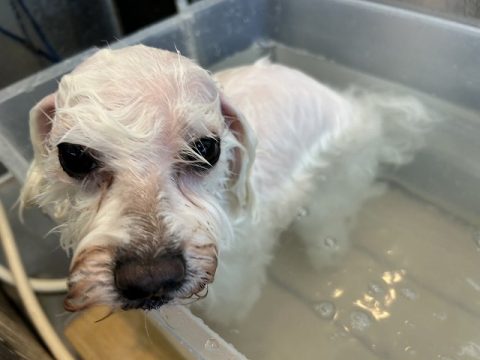 オゾン浴のお水が白く濁ってきたらシャンプーで浮いた汚れを綺麗に洗っていこうね(^O^)/
