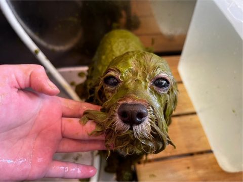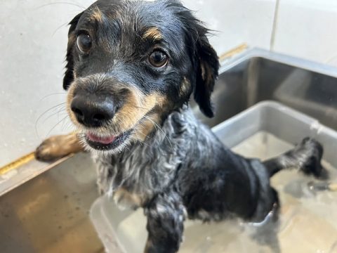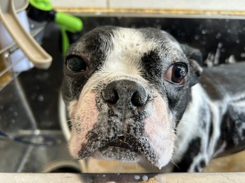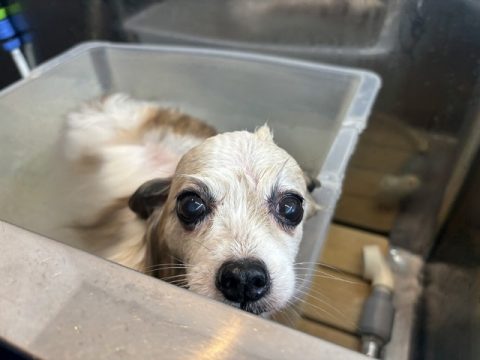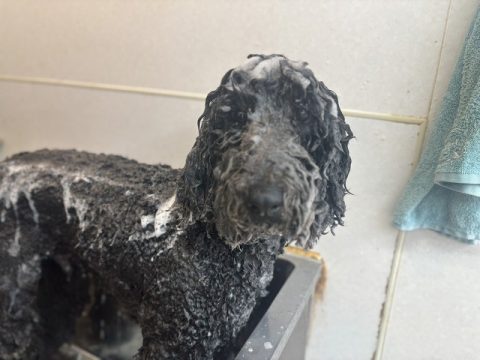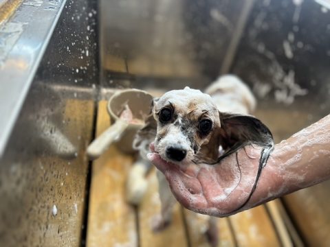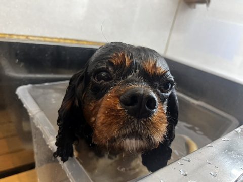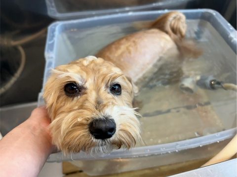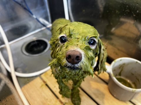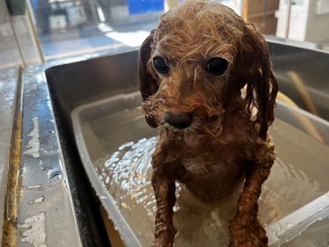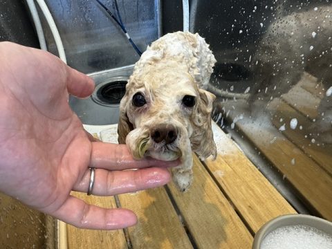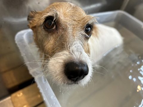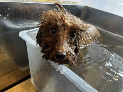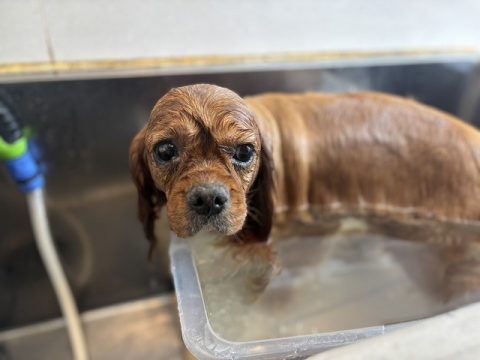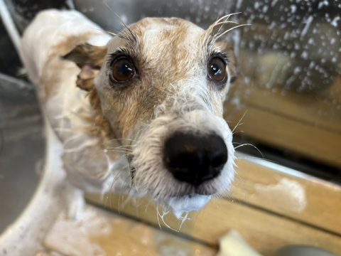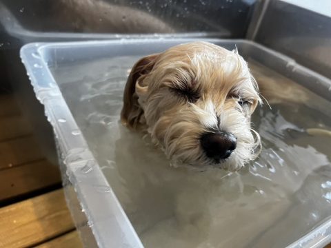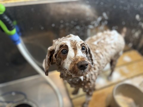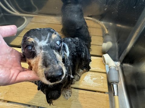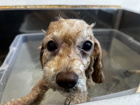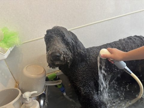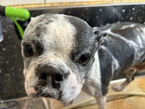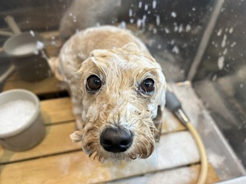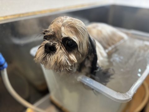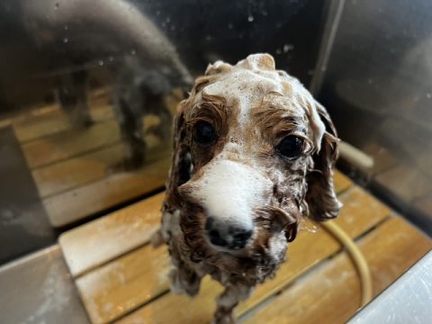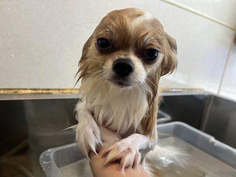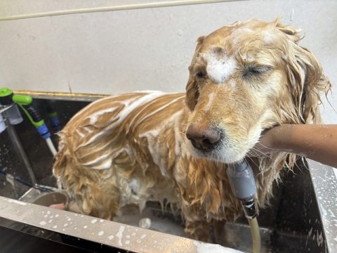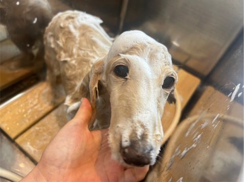オゾン浴のお水が白く濁ってきたらシャンプーで浮いた汚れを綺麗に洗っていこうね(^O^)/