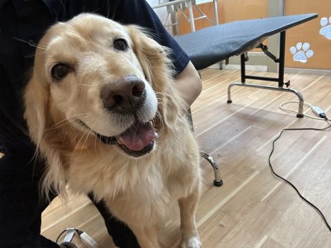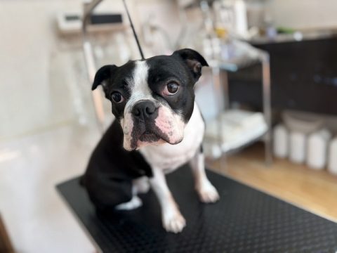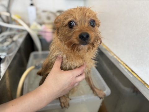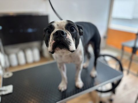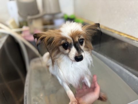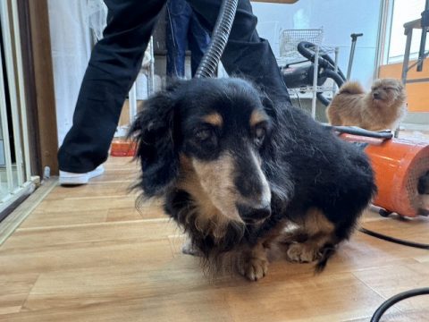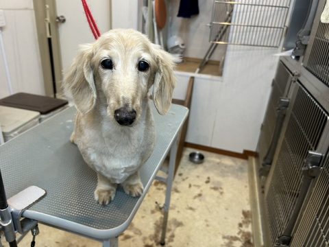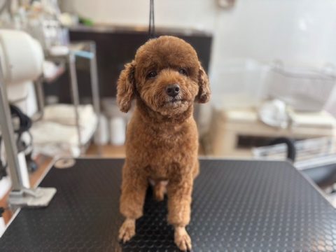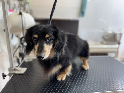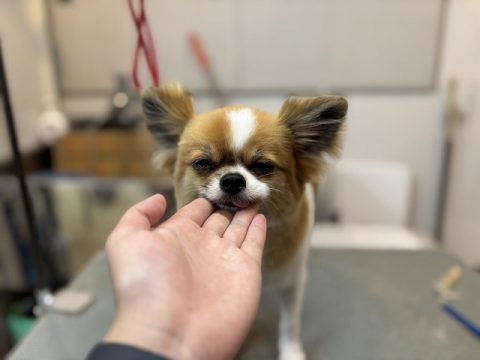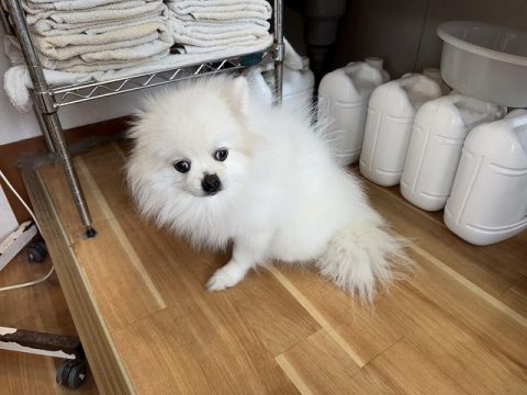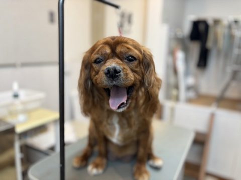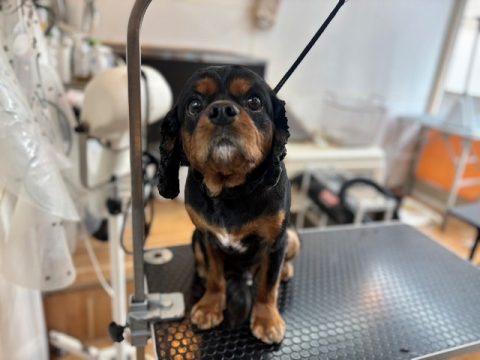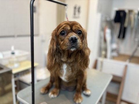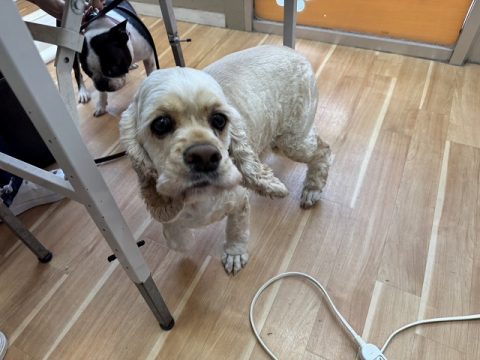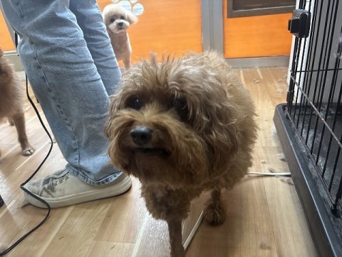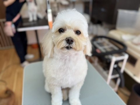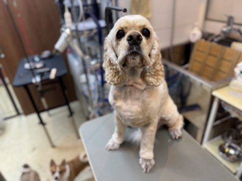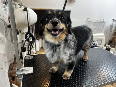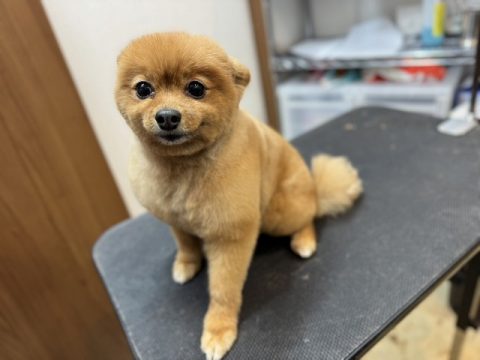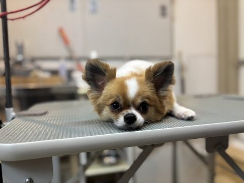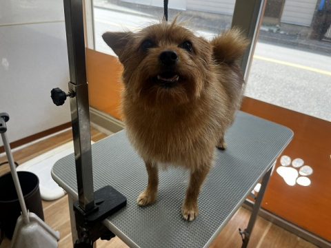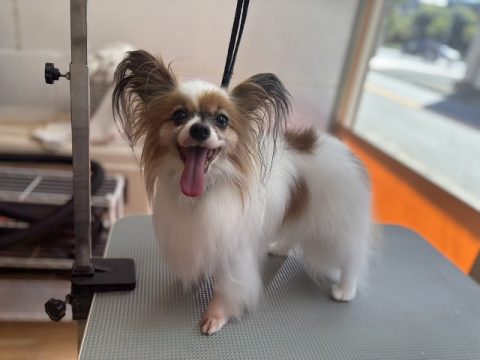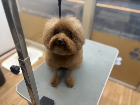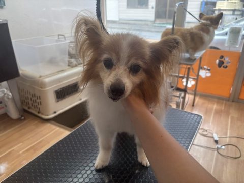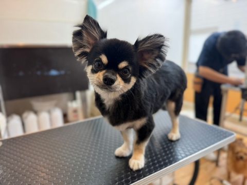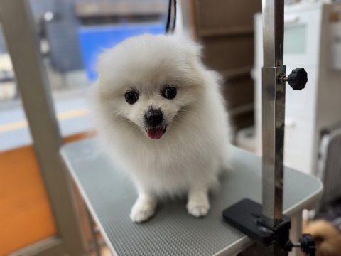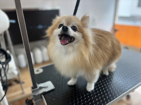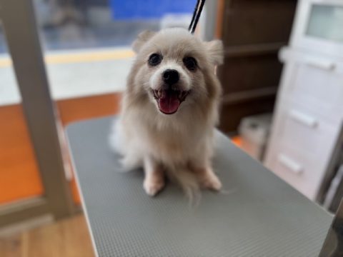 お店に入るとしっぽを大きくフリフリしながらスタッフにも台の上のトリミング中のお友達にもご挨拶をしてくれました🌞