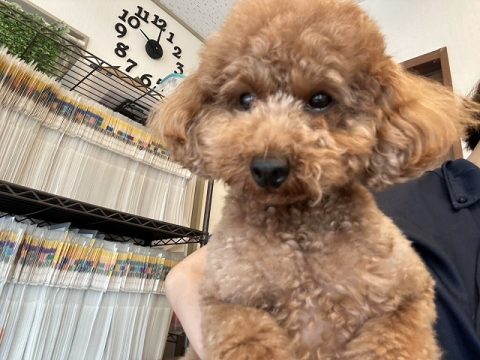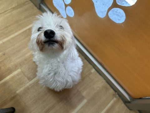 終わったあとは、嬉しそうに受付のところでお迎えをいいこに待っていました。