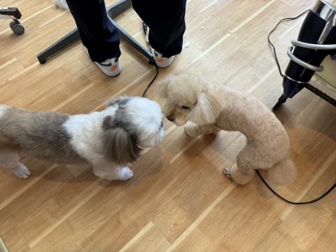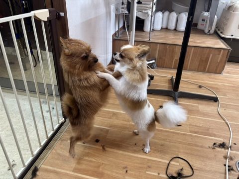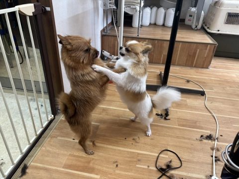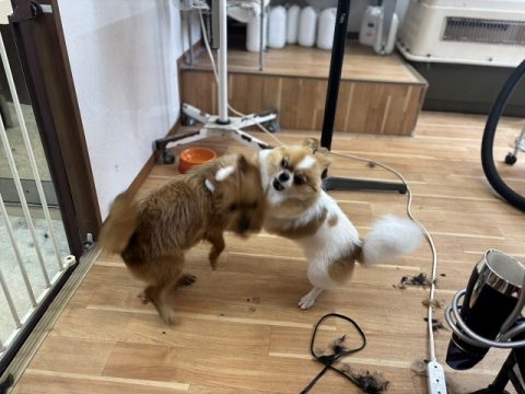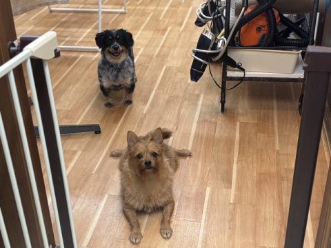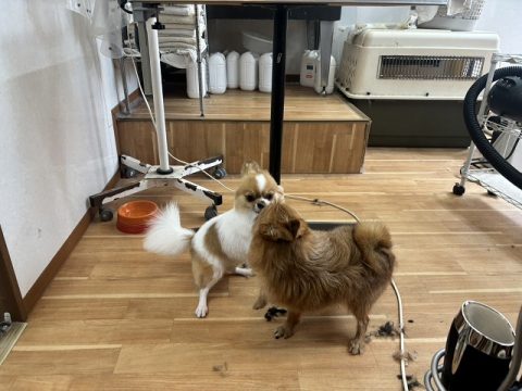 先に終わったコタローくんはコウメちゃんのカットが終わるまで近くで見守って終わるととっても喜んでいました♬