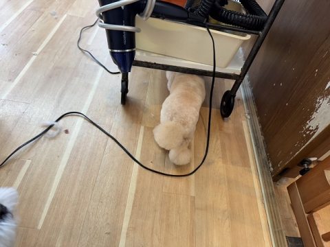 カット中はスタッフの手に顎を乗せてウトウト💤