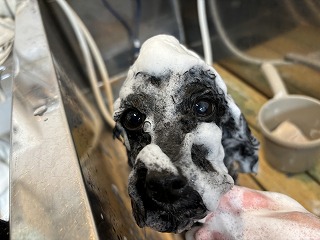 少し苦手なお顔のシャンプーもとっても頑張りました🫧